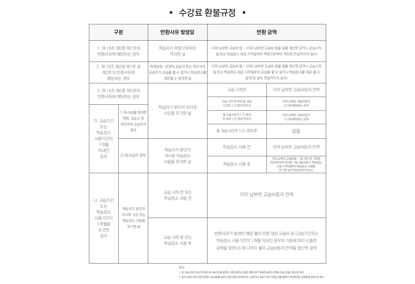| 교습과목 | 정원 | 교습기간 | 교습비 |